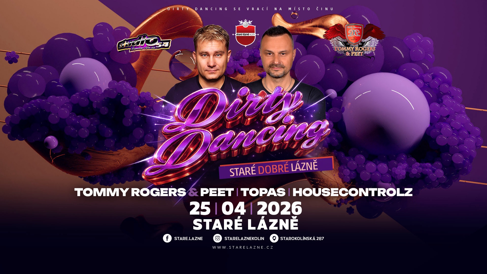 Zobrazit víceDIRTY DANCING SE VRACÍ NA MÍSTO ČINU DJ Tommy Rogers & Peet.Dirty Dancing.Support: Topas, Housecontrolz Legendární party, která se zapsala do historie české house scény. Tommy Rogers & Peet s Dirty Dancing získali hudební ocenění O2 Dance Music Awards jako Nejlepší klubová party v ČR.Ale to největší ocenění jste byli vždy vy – generace lidí,…