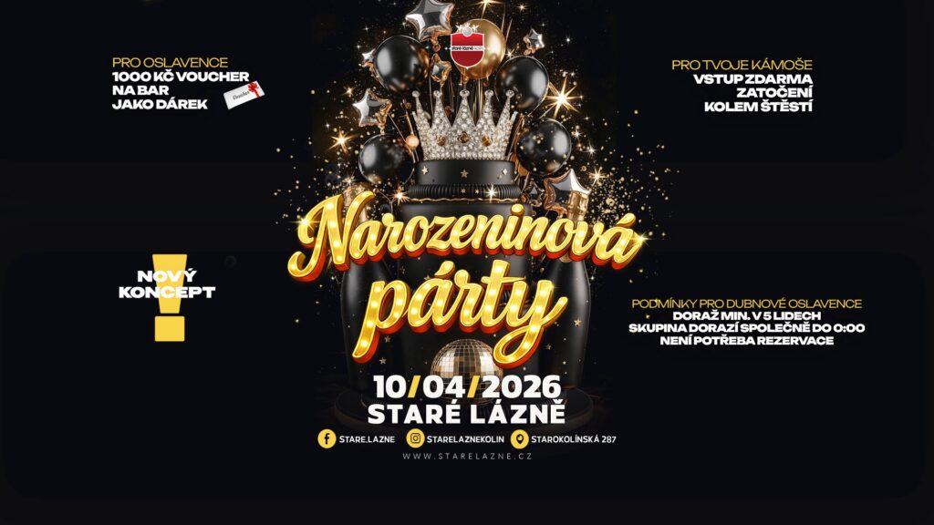 10.04.2026 @ 22:00 - 11.04.2026 @ 5:00 at Staré LázněNOVÝ KONCEPT! Dubnoví oslavenci, tohle je vaše noc!Přijď oslavit narozeniny...