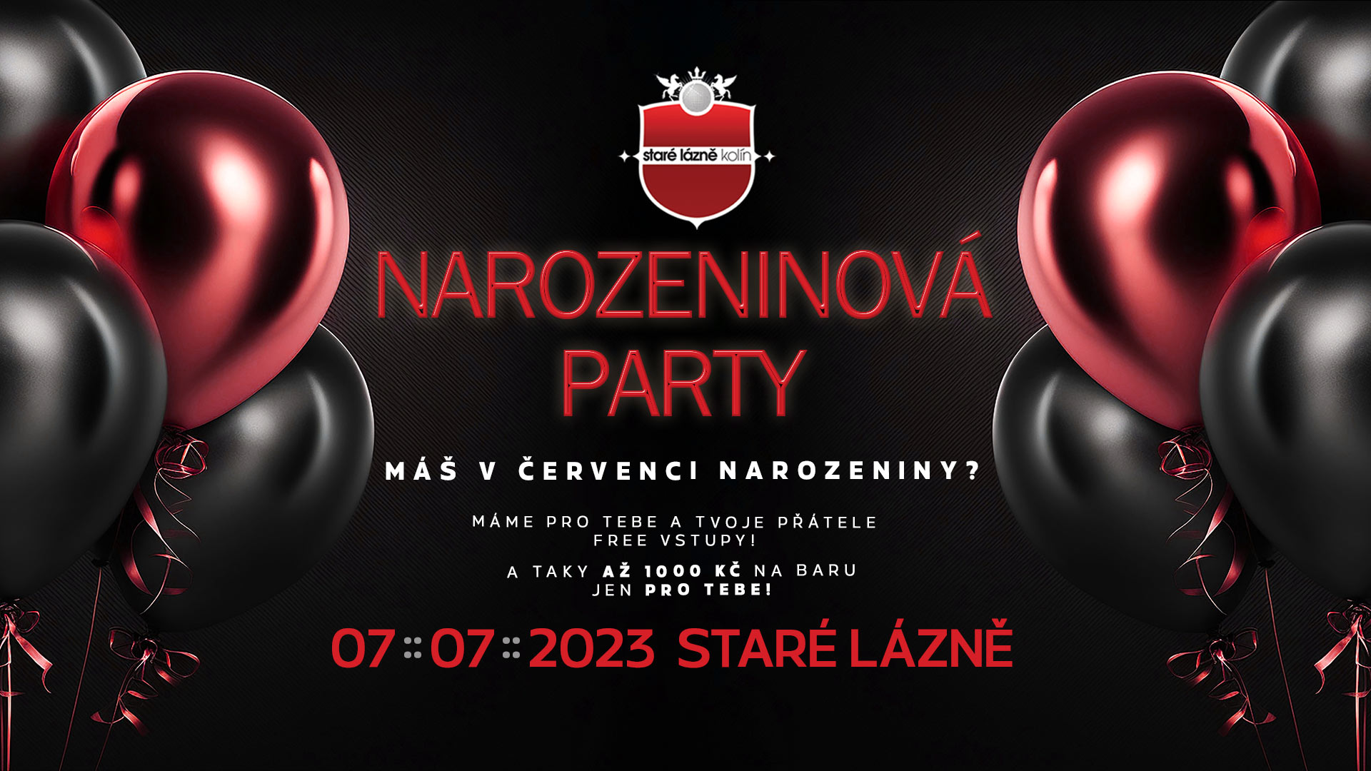 Zobrazit víceMáš v Červenci narozeniny? Doraž 7.7. 2023 do Starých Lázní oslavit narozeniny a jako červencový oslavenec od nás dostaneš zdarma vstup pro tebe a všechny tvé kámoše, 100Kč na baru za každého člena tvé oslavy a k tomu ještě dva panáky ochucené Amundsen vodky zdarma pro každého člena oslavenecké party (max 20 panáků). Podmínky uplatnění:…