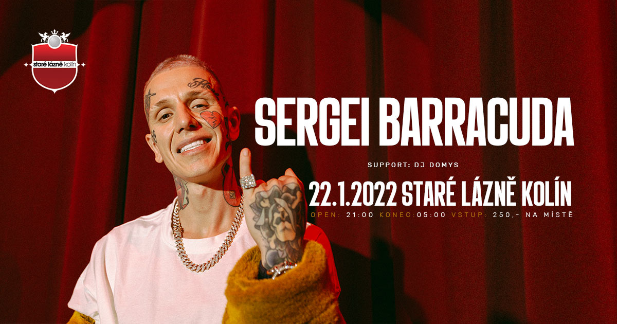V Lednu 22.1 k nám dorazí vystupovat známý a talentovaný Rapper - SERGEI BARRACUDA. Jako support se představí DJ Domys. Koncert proběhne ve spodní části klubu. HLAVNÍ STAGE • SERGEI BARRACUDA • DOMYS • HOUSECONTROLZ RADIO STAGE • DJ DĚDEK Předprodej vstupenek: https://www.ticketstream.cz/akce/sergei-barracuda-150783 Vstup pouze do přední části 100 Kč. ┎ Otevřeno od 21:00 ┣…