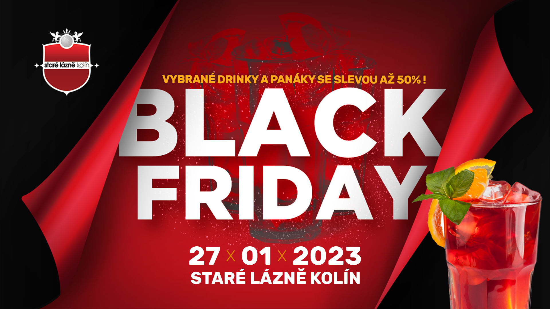| CZK100Černý pátek je tu! A s ním sleva až 50% na vybrané drinky a panáky.